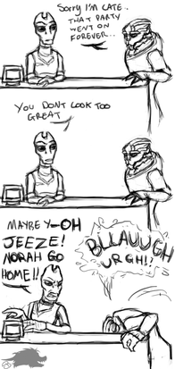 FINALLY!! Turian clothes that look good! And yes, she looks really awesome in that dress. In fact, this whole comic looks awesome.