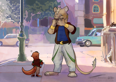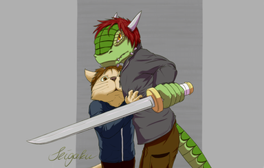 #anthro #cub #dad #dragon #father #lion #son #blackdragon #crying #cryingchild #pajama #robe