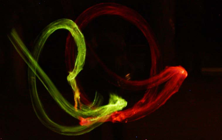 This would be me playing with fire poi and colored fire using potassium nitrate (for the red) and boric acid (green) in denatured alcohol.. Nothing too special