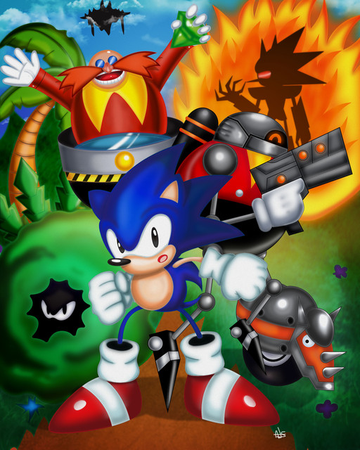 This is a small tribute to the genesis Sonic era. I admit, Im a sucker for the classic style.Couple things I want to note. First of all, Sonic look familiar? I made the lineart of this late last year but after losing interest in this picture for a while, I took half of what I had already done of Sonic and turned it into this [link] . With that said, a few things like the back light on him make more sense.