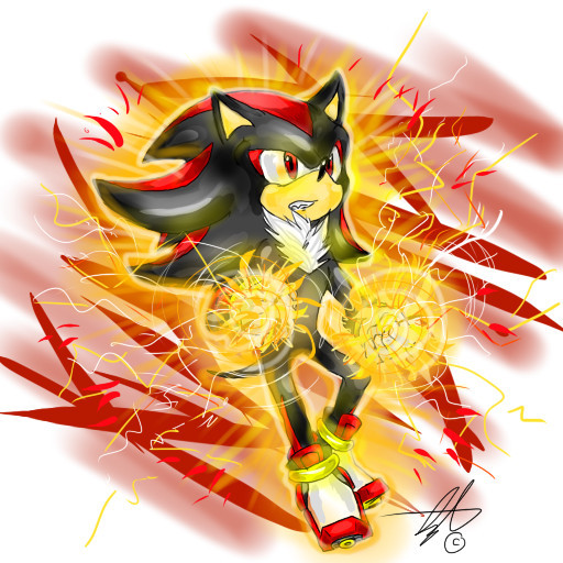 Oh my GOSH. This is really good! The way it's constructed from lines seems to really bring out Shadow's biological nature, i.e. his hedgehog quills. The closed eyes and half-angry/half-guilty expression reveals his personality, and the sparking Chaos energy in his palm being the only light he has seems to indicate that his power is his only justification for his actions -- a pretty sad existence if you ask me. This depiction of Shadow the Hedgehog has made my day.
