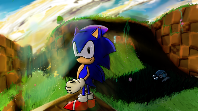 Wow really beautiful!! You draw Sonic really well, and the background is so realistic!!
