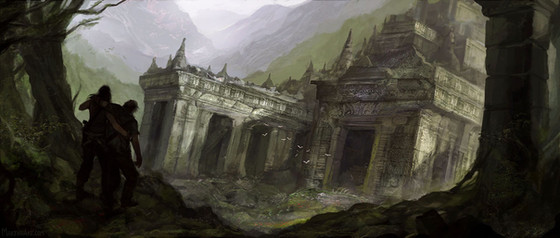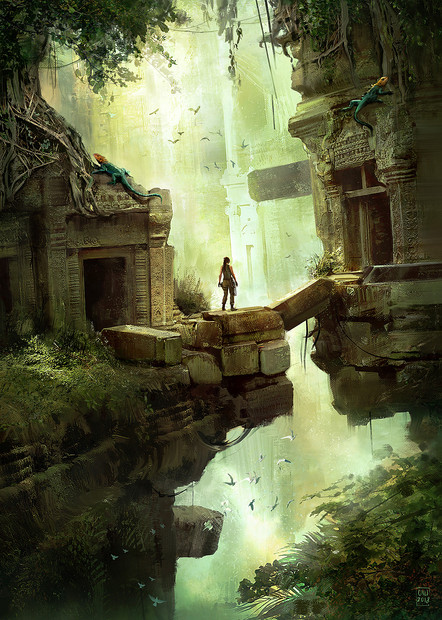 Amazing work as usual. I love how organic the ruins seem to have become, like thier a part of the jungle now. Also, your explorer is hot.