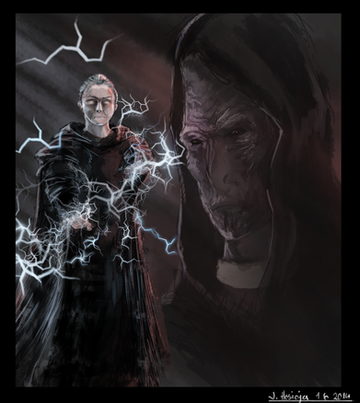 anakin redeemed, in typical light side garb, force ghost form. perhaps at the site of his pyre years laterRelated content