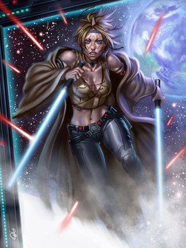 i always thought they missed out by not having a female sith - also in the same gear as Lord Vader (mask helmet etc etc) -, perhaps due to some kind of horrible tie fighter crash that then left her a female Vader but with one difference her hatred for the Jedi was even more consuming and second only to the emperor himself..