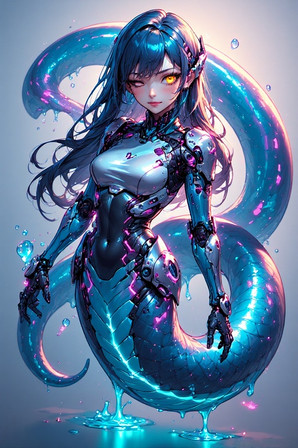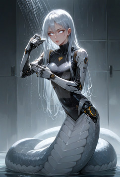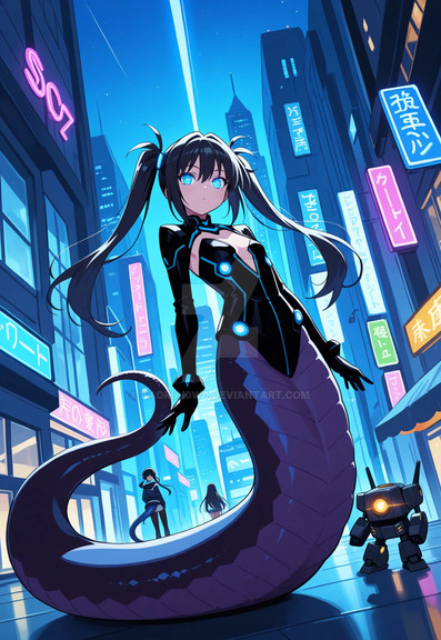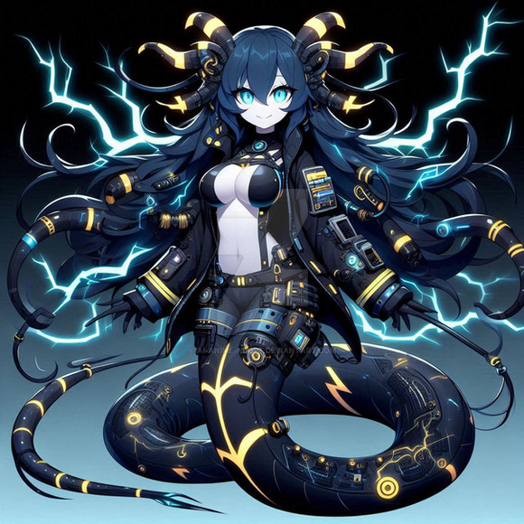 #characterdesign #scifi #cyborg #digitalart #cyberpunk #fanart #adoptable #robot #anime #android #blackhair #lamia #largebreasts #monstergirl #scales #shorthair