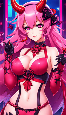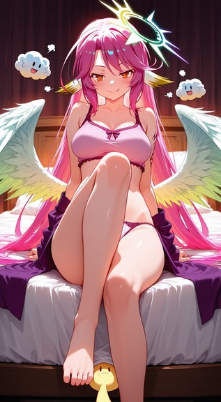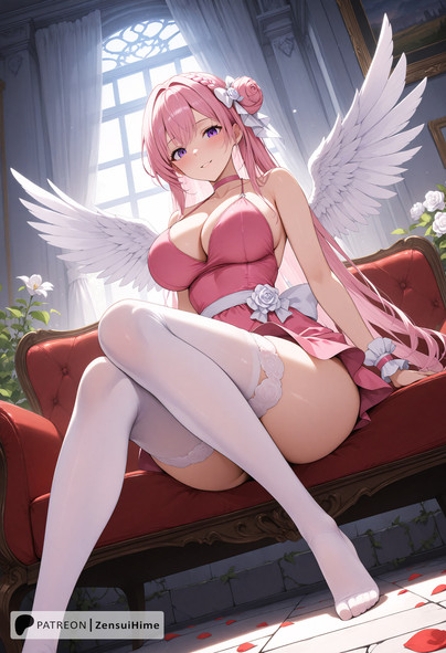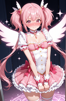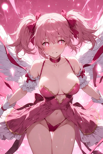#fanart #anime #animegirl #characterdesign #wallpaper #angel #animefanart #magic #choker #heart #shorthair #thig #tongue #pink_panties #medium_breasts #covered_navel