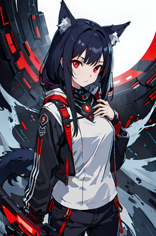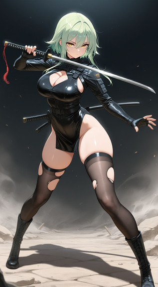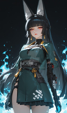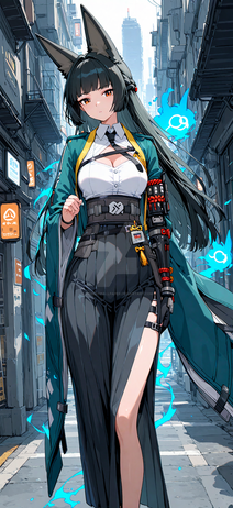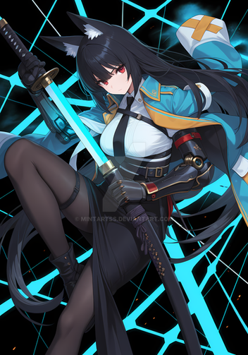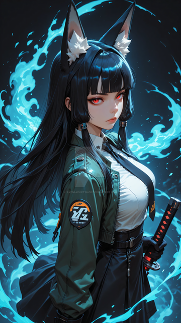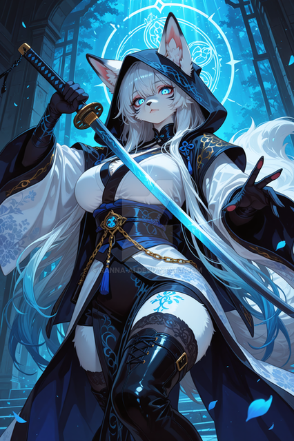 #fanart #anime #characterdesign #animegirl #digitalart #magic #wallpaper #scifi #cyberpunk #foxgirl #foxtail #kitsunegirl #longhair #mechanicalarms #sword #thighhighs #garterstraps