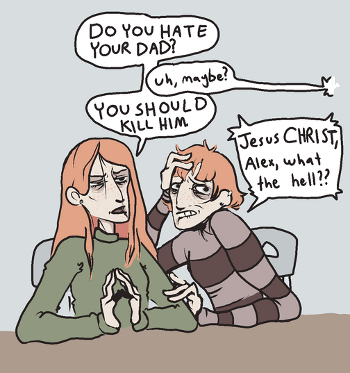 Astrid is heading to the bathroom between classes when Elizabeth pops up out of nowhere to warn her that the stall she picked has no toilet paper.