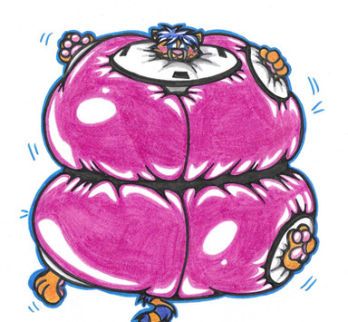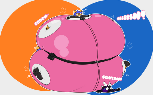Seeing the suit fill out as plan, Kitty started to feel comfortable with his plan again. That all changed when the music finished up, but the air pump still pumping along.I wonder how big he'll get. :3c
