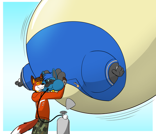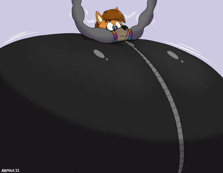With the air pump finally shutting off. Luckily by itself as the swelled large enough to hide his hands and feet with in the inflated form. He breaths a sigh as he now has a moment to relax before he tries to get out of his suit.But he also starts to think taking a nap might be good, too.