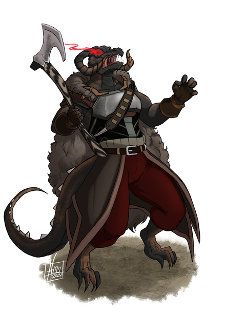 #beast #bones #dragonborn #furry #kilt #skull #warrior