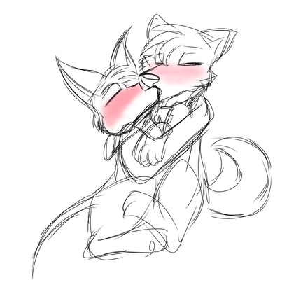 Here, too, Wolf fell asleep hugging Fox, and Fox scrolls the feed on twitter and lies on Wolf hugging his neck. I didn't want to color it, and since it's easy to get confused in my sketches (and legs especially), I clarify - this is all sfw!"
