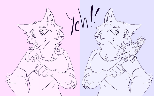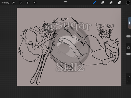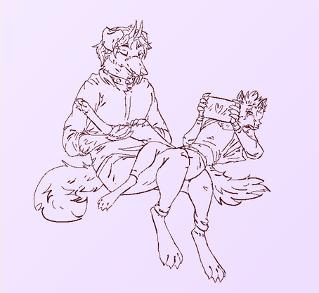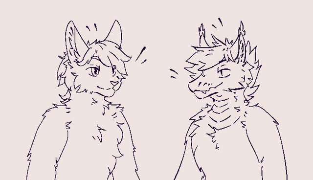 OC sketch time! These are my two characters, fox and wolf, gay and married, who still don't have proper designs and references (and don't seem to even have names?), but I draw them so often... And I think about them often.