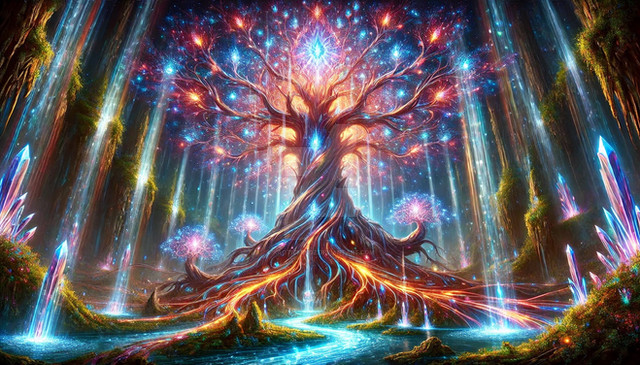 #artistry #celestial #cosmic #digitalart #dreamscape #fantasyart #galaxy #illuminated #mysticalforest #otherworldly #stars #surrealism #tree #universe #glowinglights #intricatepatterns #enchantingforest #fantasyphotography #magicallandscape #naturemagic #silhouettedfigure #treeoflife
