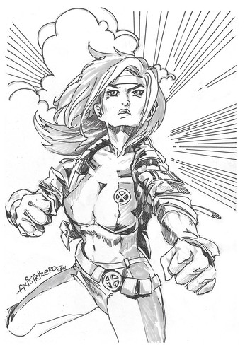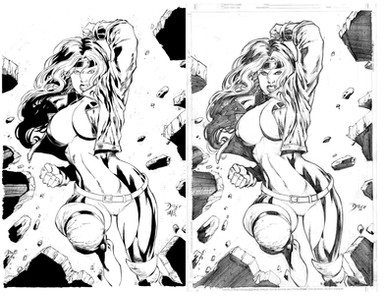Outstanding picture, but I have to ask...shouldn't the X on her chest crease to follow the contours of her body?