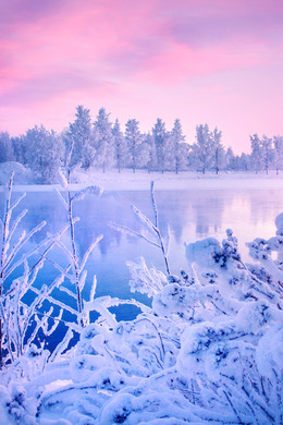This is such a calming image and there are so many things to look at from the amazing colours in the sky to the frosting around the beautifully reflective water. the colours and tones look wonderful and the composition is perfect.