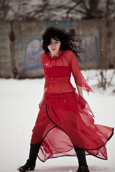 in this picture model is caught resting before shooting.. she had to climb the old castle ruins and get wet in cold water afterward..