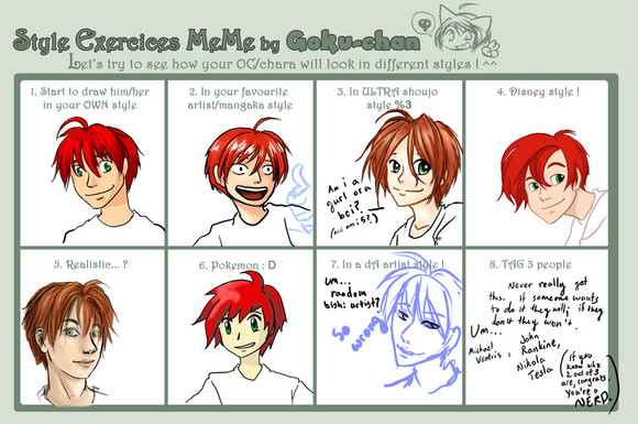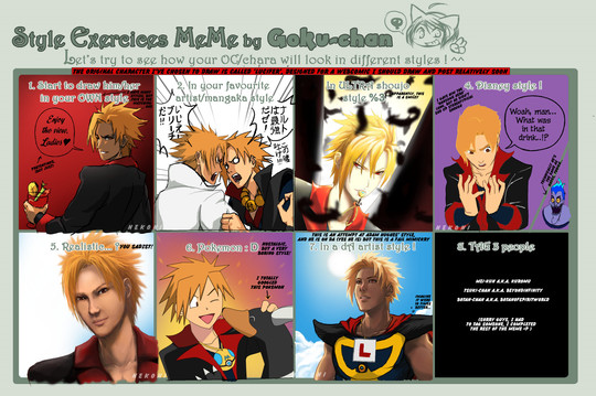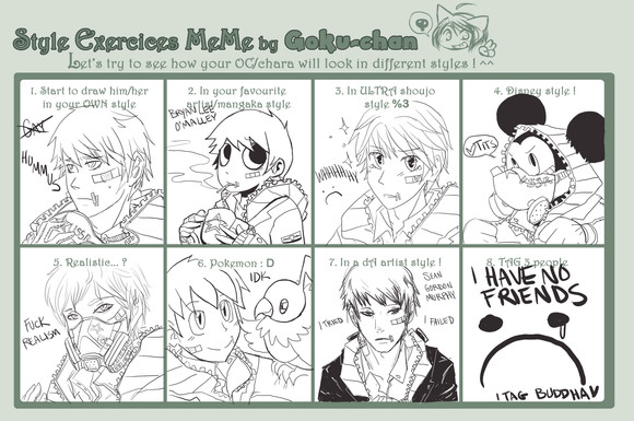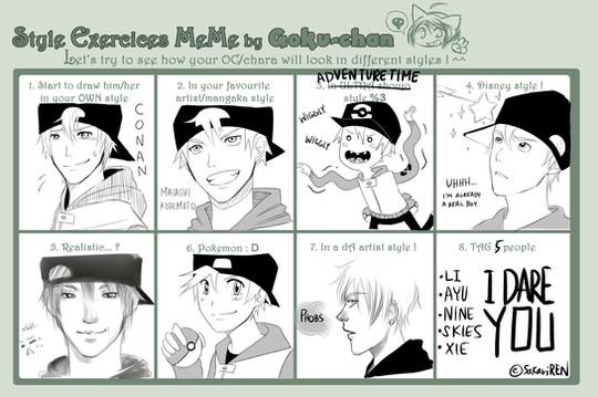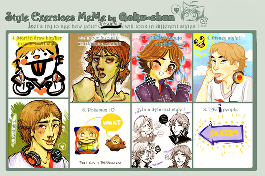 Hahaha I actually really shouldn't have done this- I'm superdooper busy right now xD;; but.. but...! It was such a cool idea! And I thought.. Maybe I'll just do one.. or two.. or... and then spent the past few hours doing this. I really had a ton of fun- and (WUT)- I think I learned something! I did each pic by trying to find examples of what I was drawing from each artist (this kinda eyebrows, this kinda hair, this kinda shading, etc) and it was.. intriguing.. to see how each person handled things. It was very "oh WOW, that's how they handle the nose? hmm, interesting.." xD so I'd recommend doing it, if you have the free time!