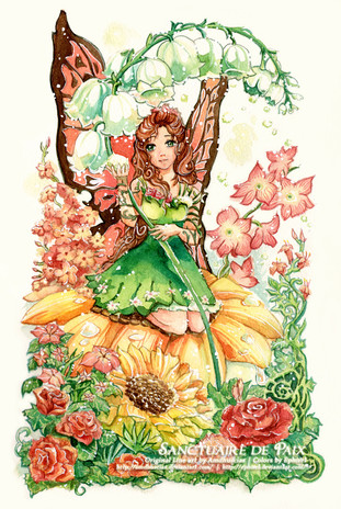 This is gorgeous ! I love every single detail in it. The colors, the flowers, the dress, and the fairy are so lovely ! ^^