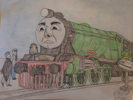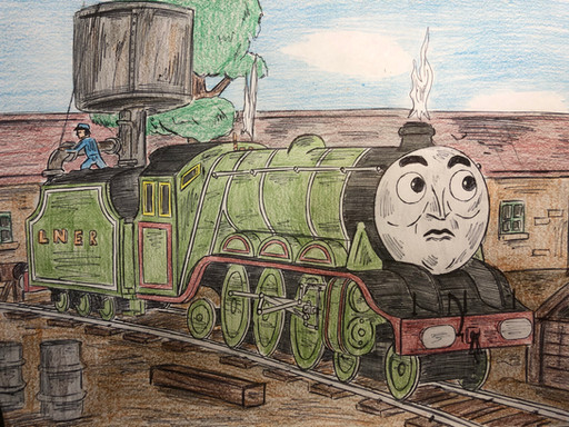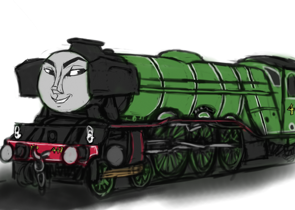 Flying Scotsman from the later Thomas the Tank Engine special as part of an art trade from tumblr.tbh if I ever do draw anything for this show again, it will probably be this guy. He may be a pretty minor character, but he's got such a cute face. I may or may not have written self-indulgent fanfiction about him too *whistles nervously*
