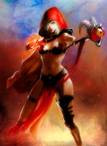 Wow......This gives me a kick ass idea for a Dungeons And Dragons adventure. Little Red Riding Hood ain't so little anymore. She grew up into a sexy and powerful battlemage! LOVE THIS!