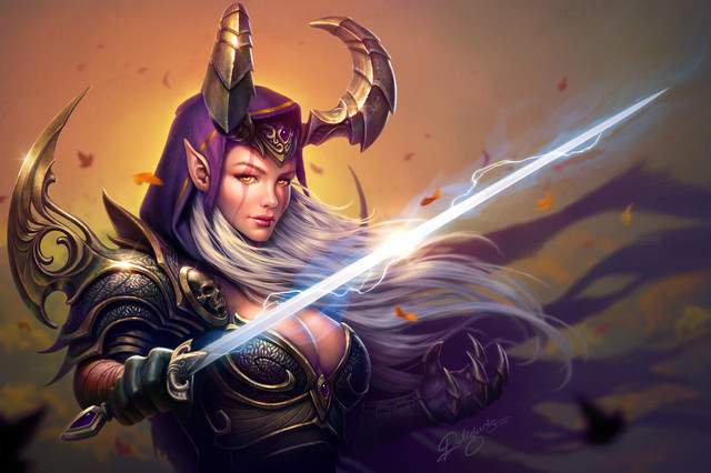 ...Battlemage version. I started this as a pinup, but it ended up being a full illustration.Painted in Photoshop.