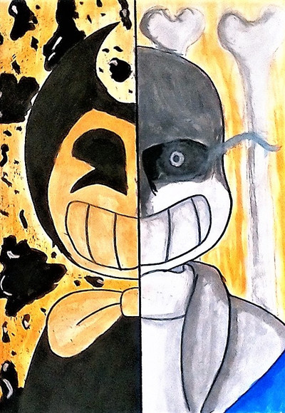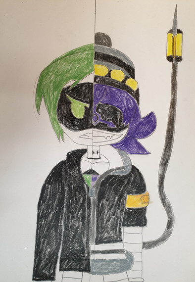 que genial dibujo amor con las mitades de darck y mercy :3