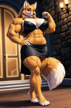 #abs #biceps #bikini #bra #female #femalemuscle #fox #foxgirl #furry #highheels #latex #lingerie #panties #pectorals #muscularfemale #hypermuscle #hypermuscular #latexstockings #muscularthighs #fox_ears_and_tail #muscular_thighs