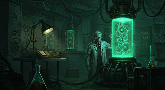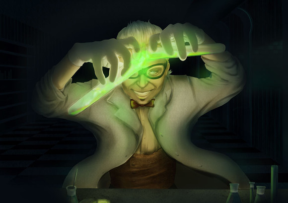 Oh wow this is just fantastic. The stuff in the test tubes looks suitably potent (and the look on the mans face is just petfect).