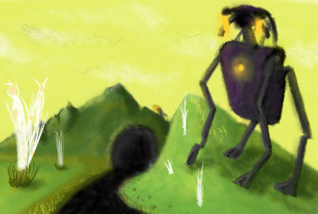 After a few moments of silence my companion reached out a rubbery, nailed hand and stroked my 'cone's glass canopy. My heart raced in the uncertainty of the moment. yet I stood fast, recording everything, more and more aware that I was the alien on their planet.Because there isn't enough expedition fan art out there, let alone that of the Eosapiens.