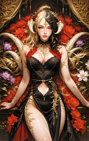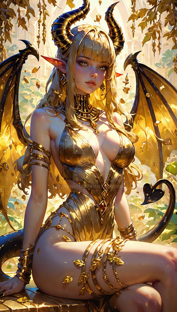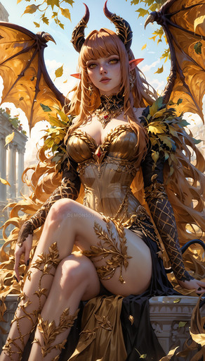 #digitalart #characterdesign #beauty #videogamefanart #anime #fanart #warrior #ai #demon #demongirl #gold #golden #goldleaf #leafs #roman #aiart #ai_generated_art