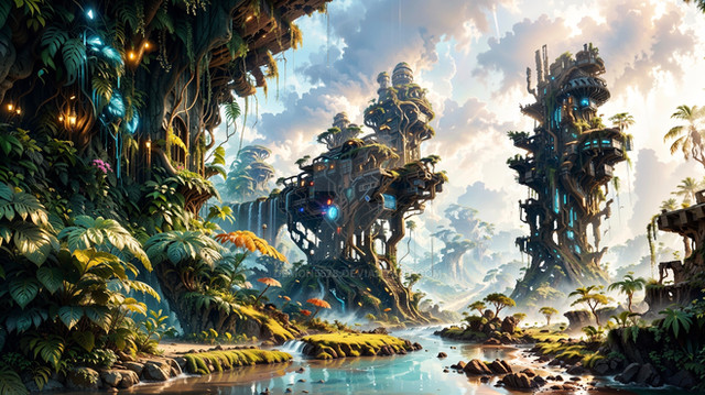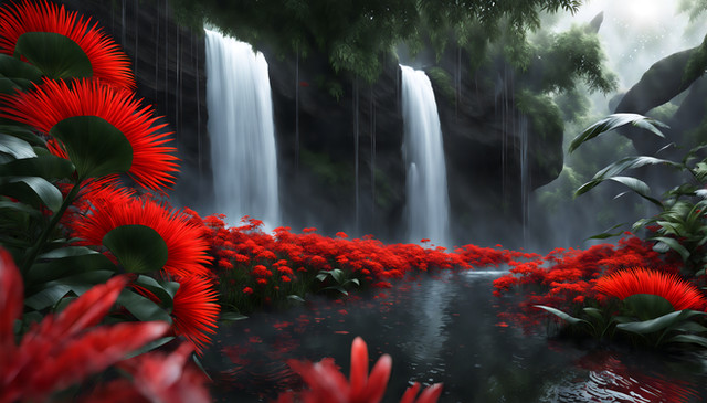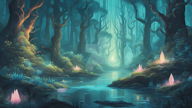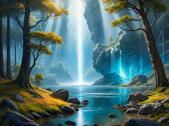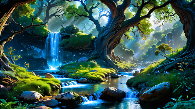 #digitalart #wallpaper #forest #waterfall #ai #dreamup #deviantart #fantasyart #digitalpainting #jungle #plants #photography #magic #conceptart #cyan #ai_art