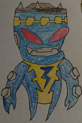 A walking battery with a sick sense of humor to match. Here is the living, grinning power cell himself: Buzzshock!!Species: Nosedeenian, but are more commonly known as Megawatts.
