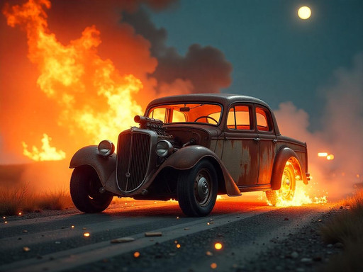 #car #vehicle #ai #dreamup #photography #explosion #filmphotography #portrait #streetphotography #vintage #explodingcar #ai_art