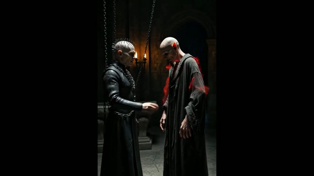 Pinhead, yearning for a challenge, opens a portal to Crystal Lake, summoning Jason Voorhees to Hell. The ensuing battle is fierce, but Pinhead, using his chains and hooks, manages to subdue Jason. Impressed by Jason's resilience, Pinhead transforms him into a Cenobite, granting him even greater power. Together, they become the guardians of Hell's gates, ensuring only the worthy enter.