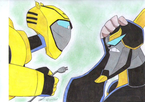Down at my grandma's house for 4 FRAGGING DAYS! (the horror) and this was all I took. >XC Anyway, I'm starting to draw facial expressions on my figures now. I think it's better. ^^ With big pic files like this one I'll draw the faces on Paint Shop; with smaller ones I'll stick with MS Paint. Oh! And click the 'Download' button to see the detail better.Bumblebee & Prowl © Hasbro