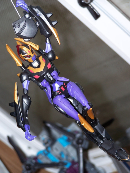 Didn't go anywhere today, stayed inside, got bored, decided to do some model shots of Blackarachnia. Of course she was against it at first, but after much persuading, she finally agreed on it...as long as I don't show these to anyone. Pfff, yeah right. XD I'm just glad she doesn't go on the internet as much as Bumblebee and Blitzwing do.Blackarachnia © Hasbro