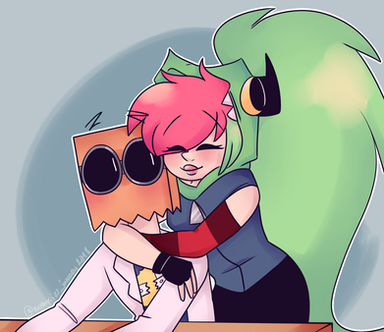 Using another base from my friend who made the Evil Laugh one, here's another self insert with my favorite scientist.Dr. Flug has been working non-stop and is just about to pass out from exhaustion, so my self-insert (dubbed as Crimson in the Villainous fandom) offers to take over his shift while he heads off to rest.