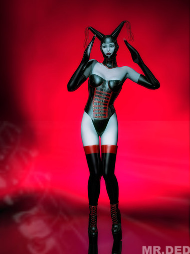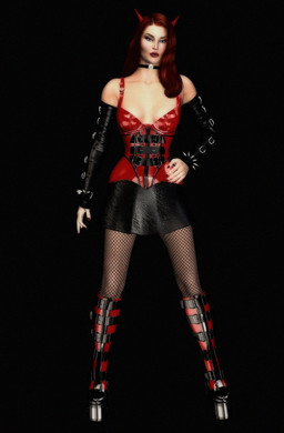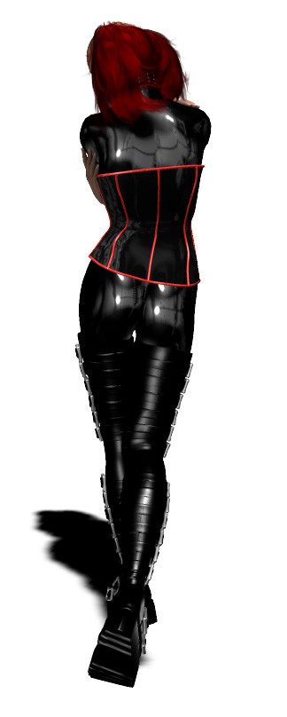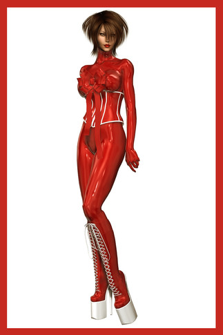 This picture started off as a render from Poser where I spent a lot of time playing around with material settings to get a good latex effect, then messing about with lighting to get the right kind of reflections.