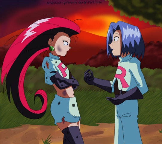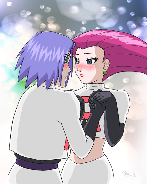 This is sort of a follow-up to That Epilogue . While technically it comes earlier chronologically! Fancy that. It's based on the confession panel in the Dengeki Pikachu epilogue. Except this time I wasn't trying to emulate the pose as closely as I did in the other pic. Mostly 'cause the panel is tiny and James is too tall in it. And he's so passionate about his confession he spits while he yells it. Silly Ono Toshiro.I always wondered why James is so incredibly beaten up in that panel. Did he save Jessie from some horrible creature or an explosion or whatnot? Did he get blasted off and was stranded for days? Either way, I guess him nearly dying or her nearly dying is what pushed him to confess.