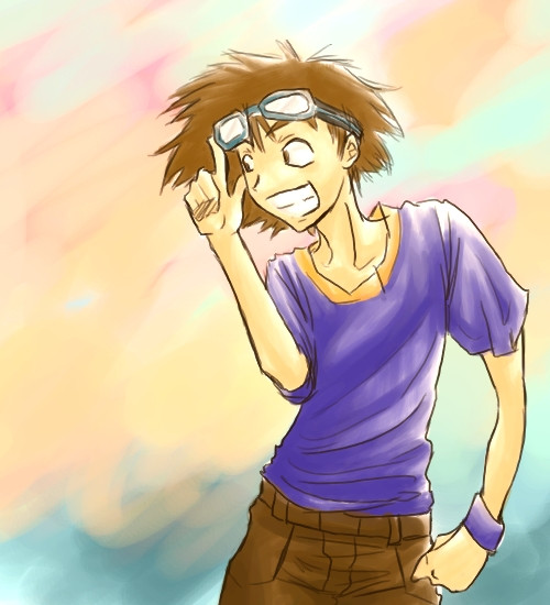 So. Hirokazu.I like him. I don't get why people don't like him. Everyone likes a goggleboy! And Hirokazu has that perfect goggleboy personality - energetic, optimistic, rather loud and arrogant and short-tempered and quick to action and also the most loyal friend you could ever ask for.