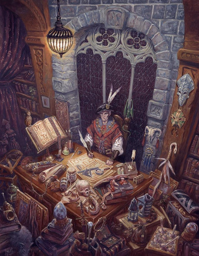 #beard #bird #book #digital #dnd #dungeonsanddragons #illustration #jar #magic #magician #mushroom #paint #pestle #photoshop #spell #wizard #wizards #wizardsofthecoast #wotc #spellcomponents