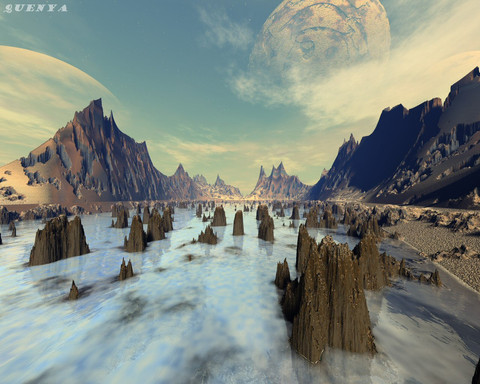 woah wicked textures +terrains, the sky is gorgeous too the shoreline where the mountain and water meets could use a little softening- possibly a slight blurring as they look sharp atm - still a g00d scene
