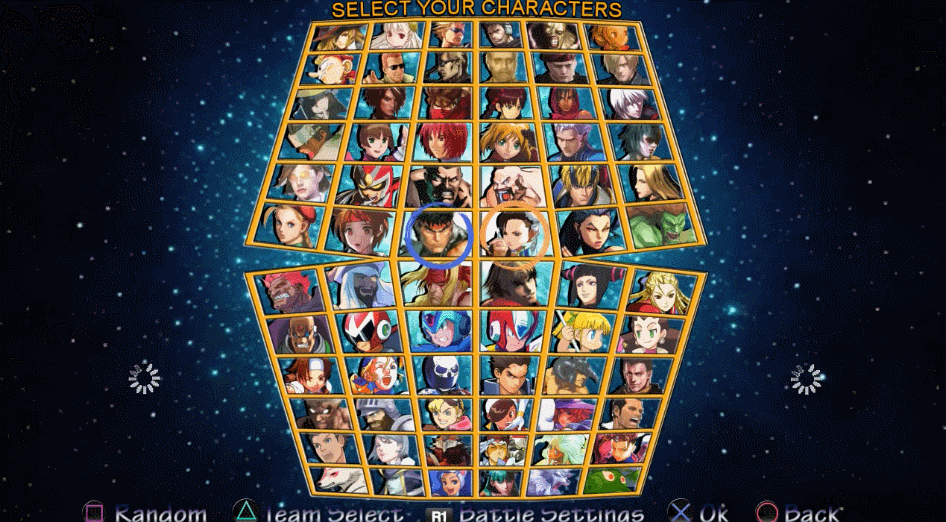 #big #bomberman #boss #capcom #castelvania #castlevania #character #contra #crossover #fight #fighter #game #goemon #head #ig #jill #konami #mgs #morrigan #nemesis #pyramid #quiet #re #rizer #roster #ryu #select #sf #snake #snes #solid #sports #street #strider #bill