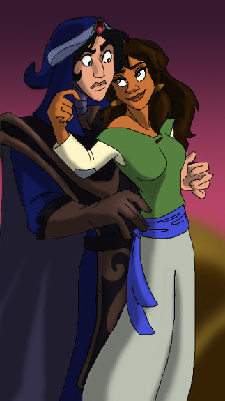 Go Moze! I really wanted this pairing to happen in the series. I mean, really. You have an Lord of the Sand, and Sand Witch...and you do NOTHING with that! Come on, Disney! The could have done an episode where Mozenrath tries to turn Sadira evil again! (I smell a fanfic coming on) I LOVE genie's face. I can see him thinking, "Hold on. This kid's tried to take over Agrabah dozens of times, almost KILLED Aladdin, and kidnapped me more times than I can count!...