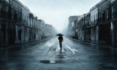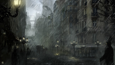 Ooh, I love this one... I like the light vs. dark theme, and I love the lighting. The lamp light and the water pools are so relaxing... The rain's awesome,( it just never comes at a convenient time here). CPIX, digital watercolor dry brush?