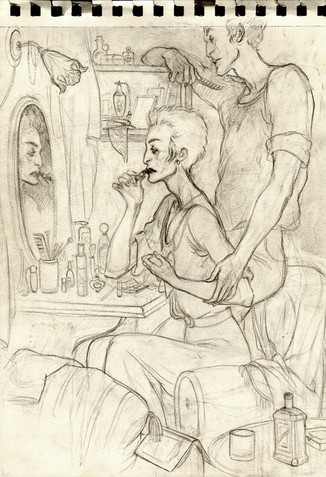 Very good work, The little bit of red on the rose just makes it, I like how the man seems like he should be in a Lautrec piece...