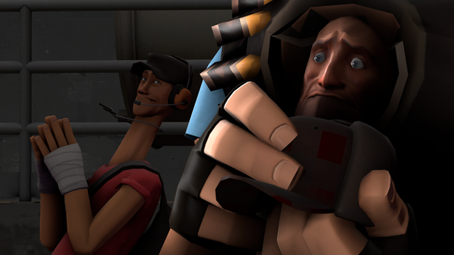 For some reason, I can picture the Scout doing something like this after hiding Sasha so Heavy can't shoot him, then he runs away and climbs to the top of the nearest tree and laughs his ass off.