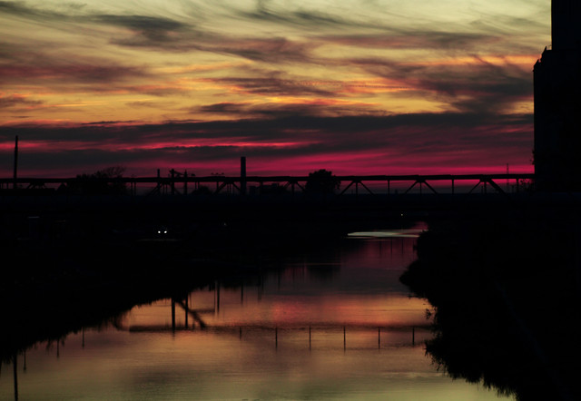 I like how the vivid contrast emphasizes the bend of the bridge/walkway.